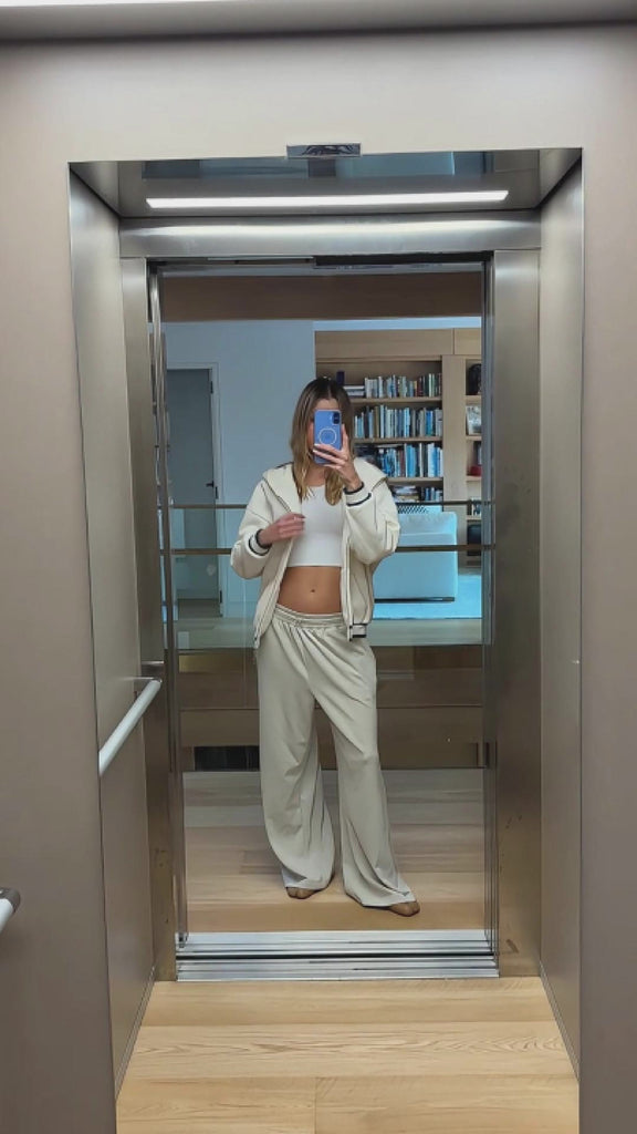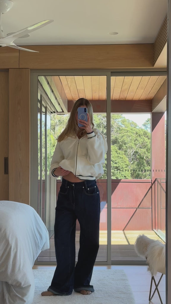 Anonima Zip-Up Hoodie - Ivory with Navy